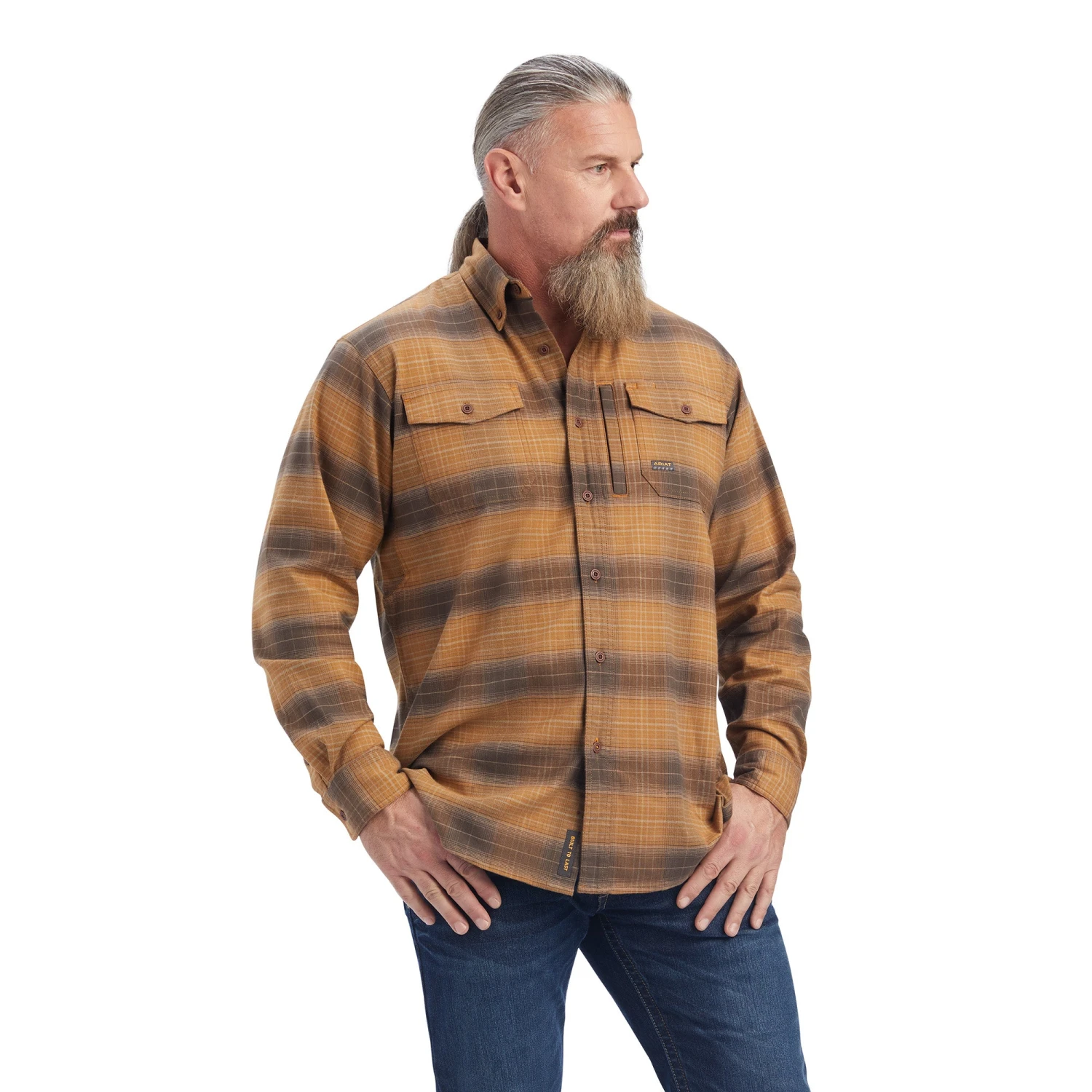 Ariat® Men’s Rebar DuraStretch Sand Flannel Button Down Shirt 10041544