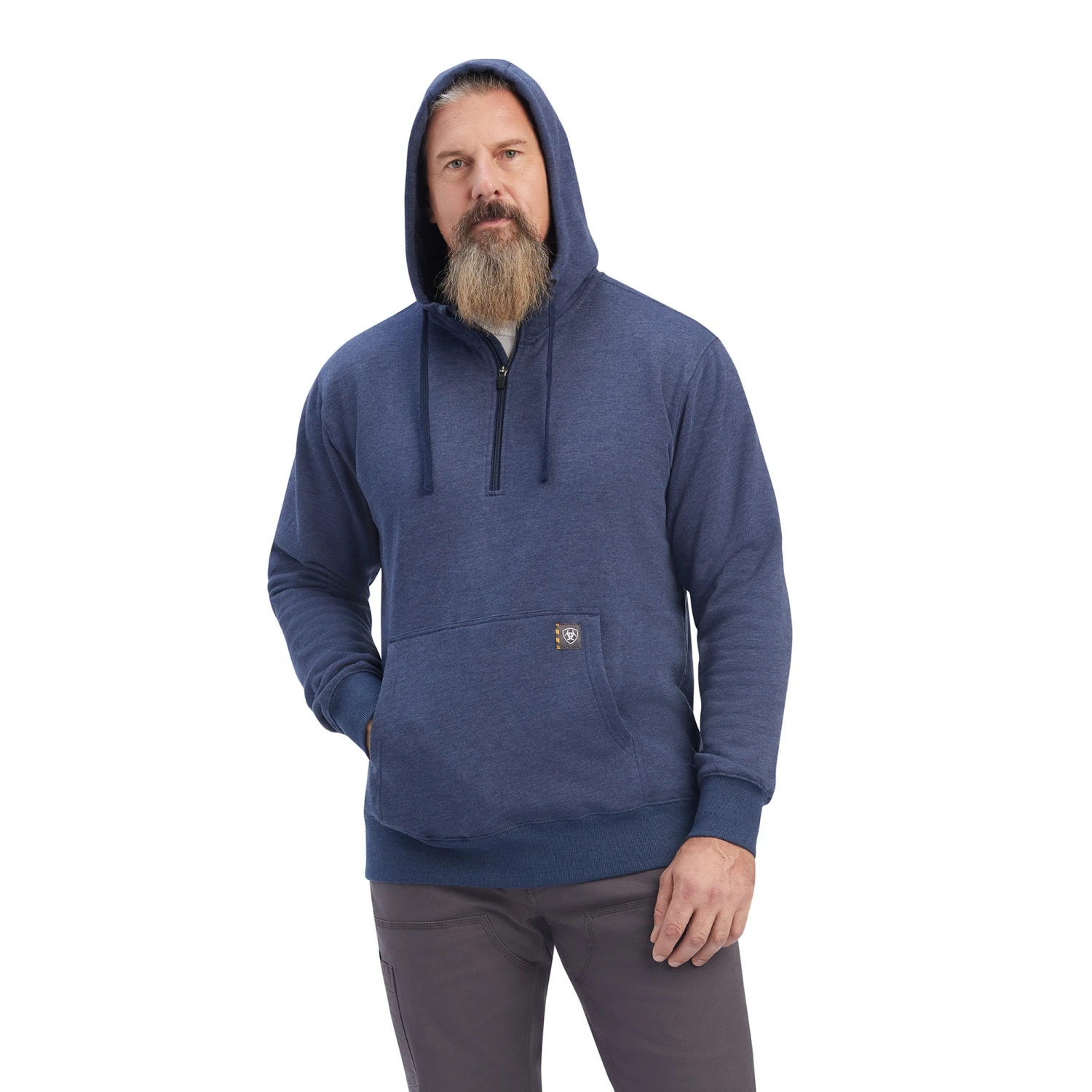 Ariat® Men’s Rebar Workman Quarter Zip Navy Heather Hoodie 10041412