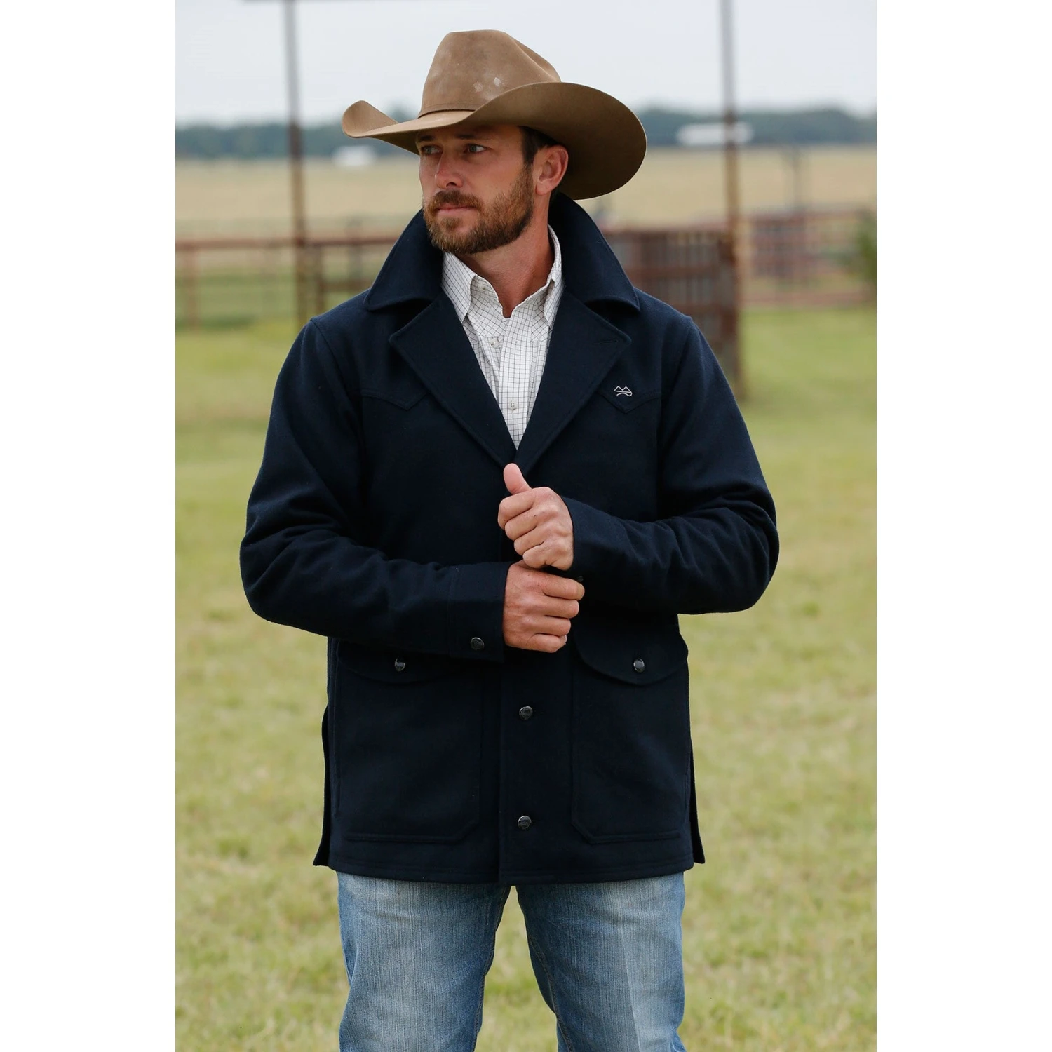 - Navy wool ranch jacket